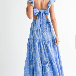 AMALFI Blue and White Ruffled Tiered Maxi Sundress