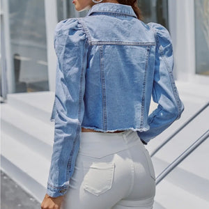 BONITA puffy sleeves Light Blue Denim Jean Jacket