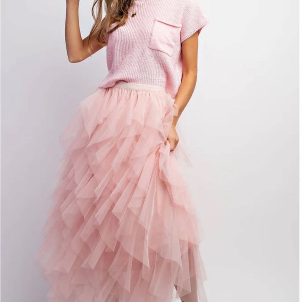 Pink Tiered Maxi TULE Skirt with Ruffles for Prom