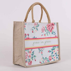 Woven Canvas Tote - Grow in Grace - Floral